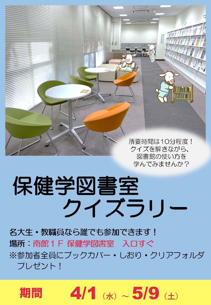 保健学図書室では、4月1日(水)からクイズラリーを開催します。